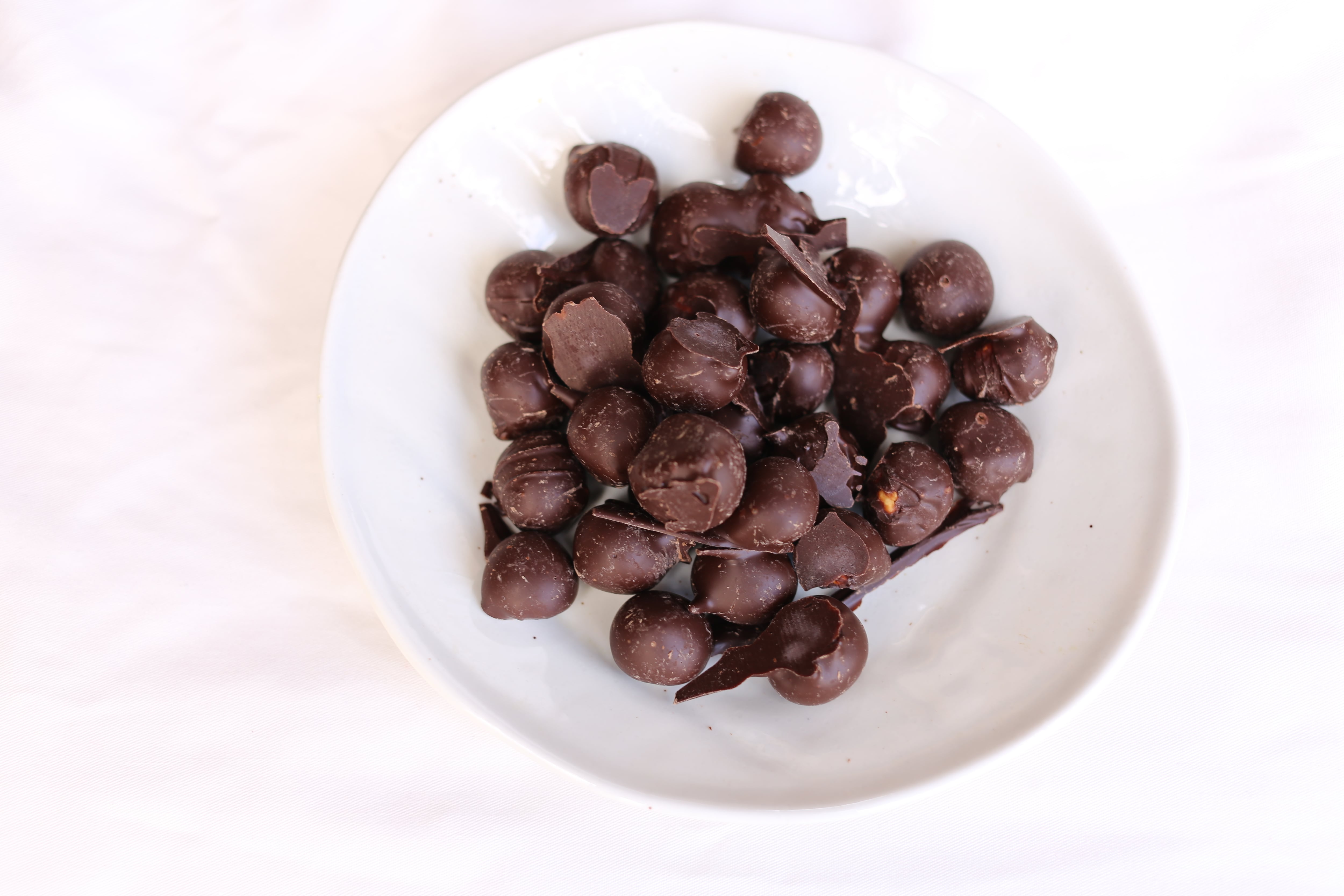 リッチな味わいのヘーゼルナッツ。工房内で焙煎し、ダークチョコレートでコーティングしました。香ばしいヘーゼルナッツが口の中で広がり、濃厚なダークチョコレートとの相性は抜群。お酒のおともに最適ですが、濃いコーヒーにも負けない一品です。
