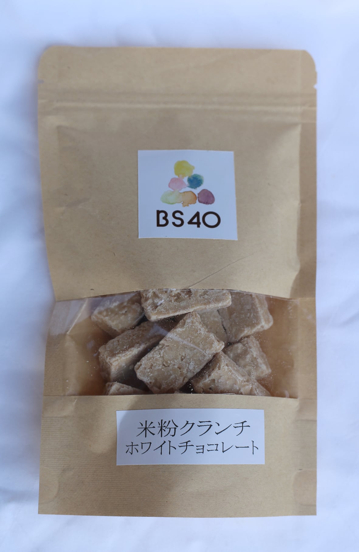 ベルギーのホワイトチョコレート、日本の米粉を使用したクランチ。サクサク感とホワイトチョコの甘さが嬉しい新作です。